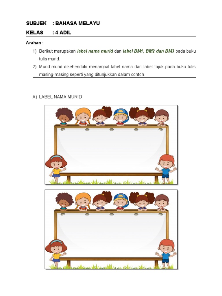 label nama murid dalam word